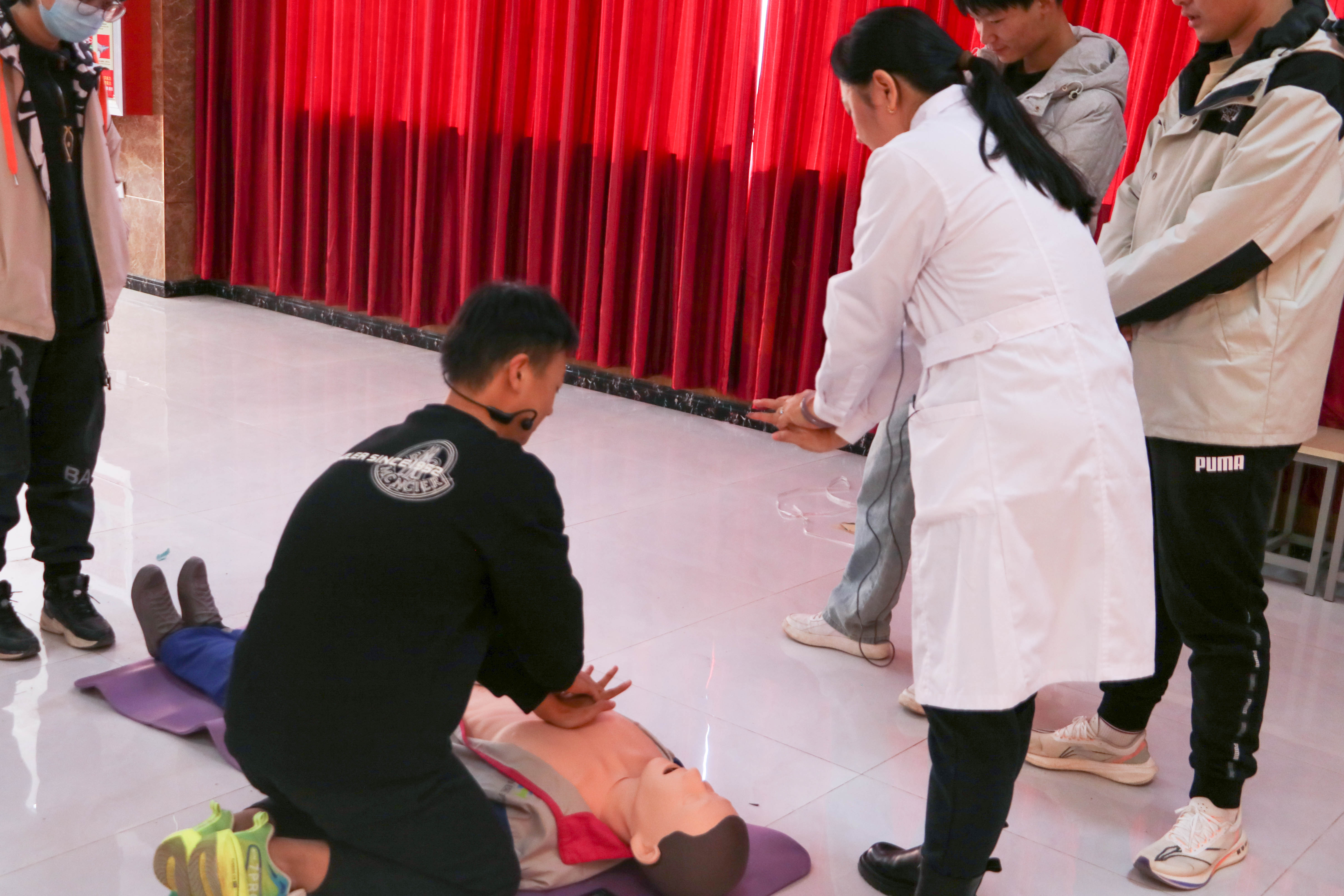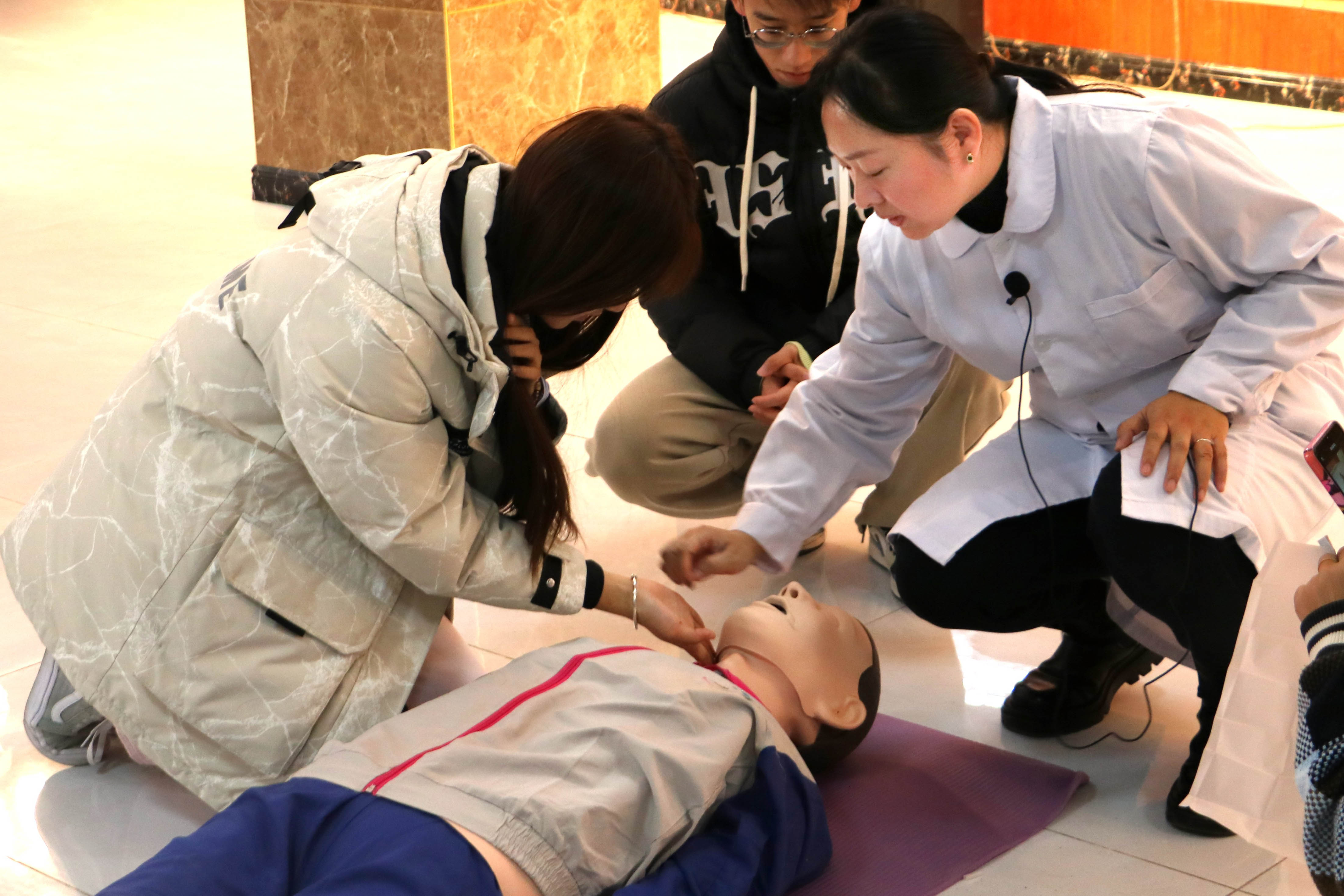 实操现场配备了专业的急救模拟人、急救包等设备,为师生们提供了逼真的实践场景。朱静敏老师结合具体案例讲解了人工呼吸、按压方法、心肺复苏有效指征、拨打120电话注意事项等内容,通过对模拟人实施心肺复苏抢救,为师生演示了操作要点,包括判断是否丧失意志、判断有无自主呼吸、判断有无脉搏、进行胸外心脏按压、清理口腔异物、开放气道、人工呼吸等环节。