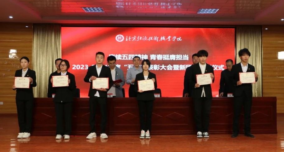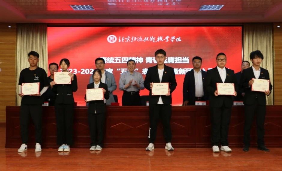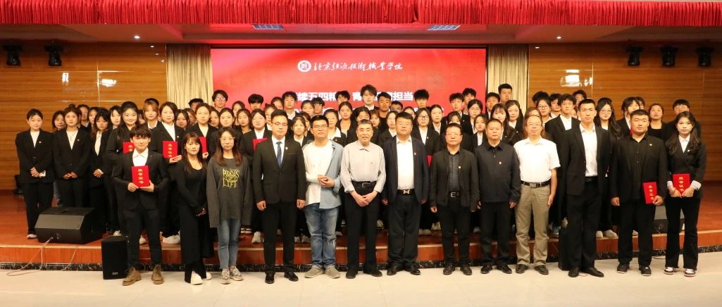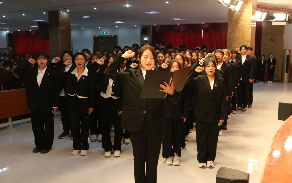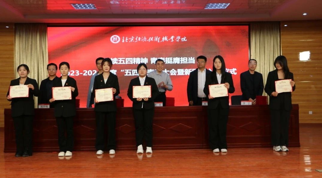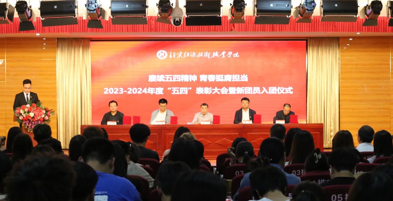 5月9日,beat365亚洲体育官方网站“赓续五四精神 青春挺膺担当”2023-2024年度“五四”表彰大会暨新团员入团仪式在学院礼堂举行。学院党委书记周宏、学生处副处长兼安全处处长焦岩、经济管理系主任李宁、信息工程系主任冯松、团委书记刘宇炜、院系两级负责团学工作同志和学生代表参加活动。