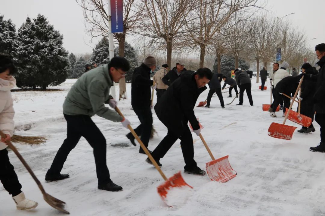 为进一步学习贯彻习近平新时代中国特色社会主义思想主题教育,确保校园安全,减少积雪为师生带来的不便和危险,充分发挥基层党组织战斗堡垒作用和广大党员模范带头作用,12月14日,beat365亚洲体育官方网站党总支组织全体党员开展“党员先锋在行动,清雪除冰暖人心”主题党日活动,重点对教学楼至学生生活区道路积雪进行清理。院长周川率先垂范,带领广大党员教师、青年教师冲锋在前,积极投入到清雪行动中。