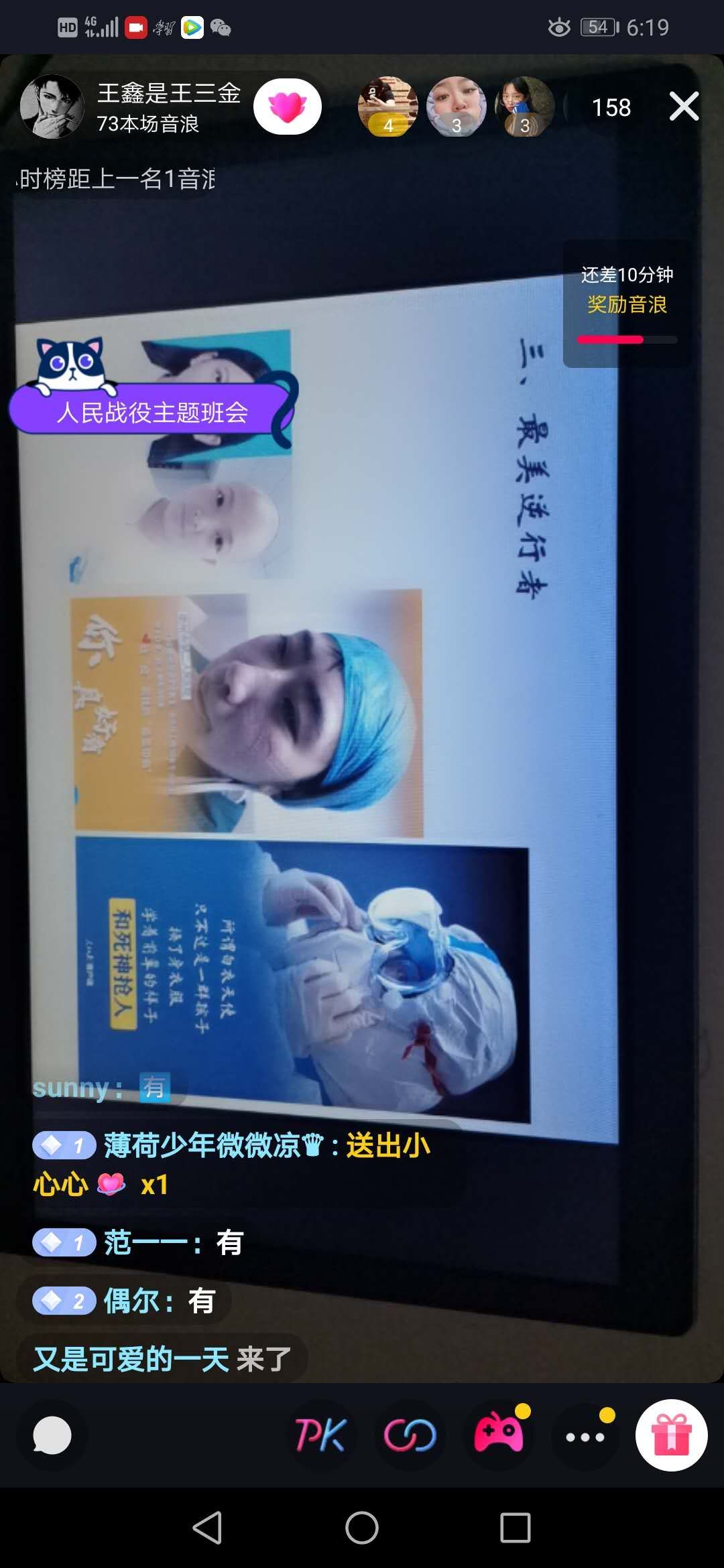 3月1日晚,9名辅导员通过网络直播方式组织学生在线 “同上一堂课”主题教育班会活动,面对疫情,党中央始终高度重视,习近平总书记亲自部署、亲自指挥,反复强调始终要把人民群众的生命安全和身体健康放在第一位。来自全国各地的医疗大军驰援武汉,许许多多的“逆行者”奋战在抗疫一线,千千万万的“顺行者”遵守规定自觉居家隔离,他们都是我们学习的榜样。希望同学们在防控疫情这堂特殊的课堂中,把党中央领导全国人民开展防疫阻止战作为自己坚定中国特色社会主义制度自信的生动教材,主动为国分忧,与祖国共命运、与人民同前行,为全力打赢这场人民战争贡献应有的力量。