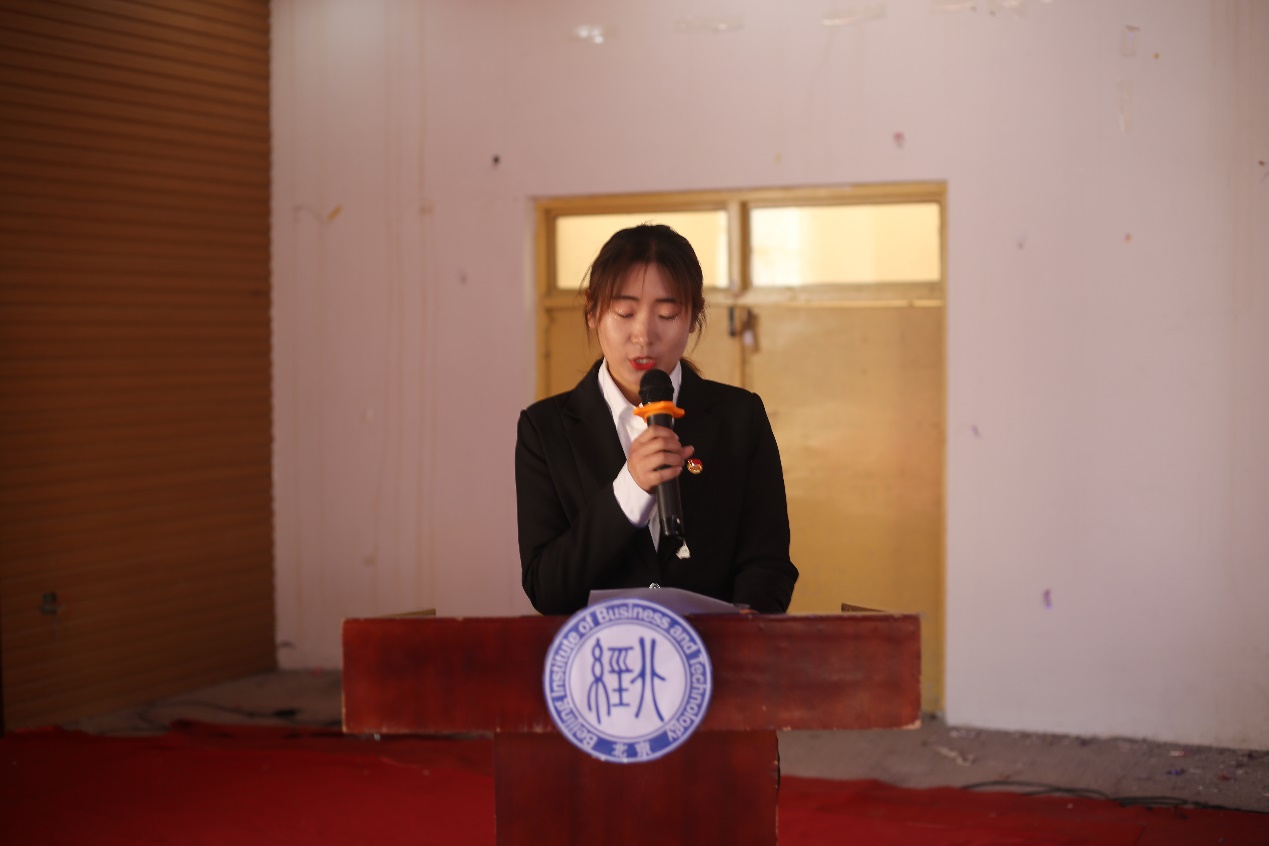 财会金融学院丁方敏代表国家励志奖学金学生、信息工程学院牟淼同学代表优秀学生干部、文化与传媒学院常满芳同学代表三好学生先后做了发言!