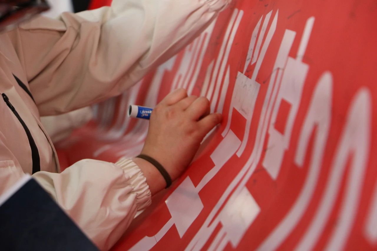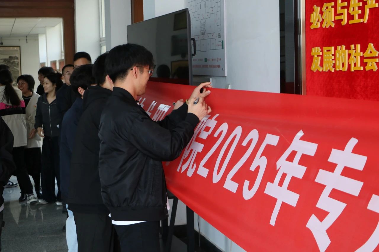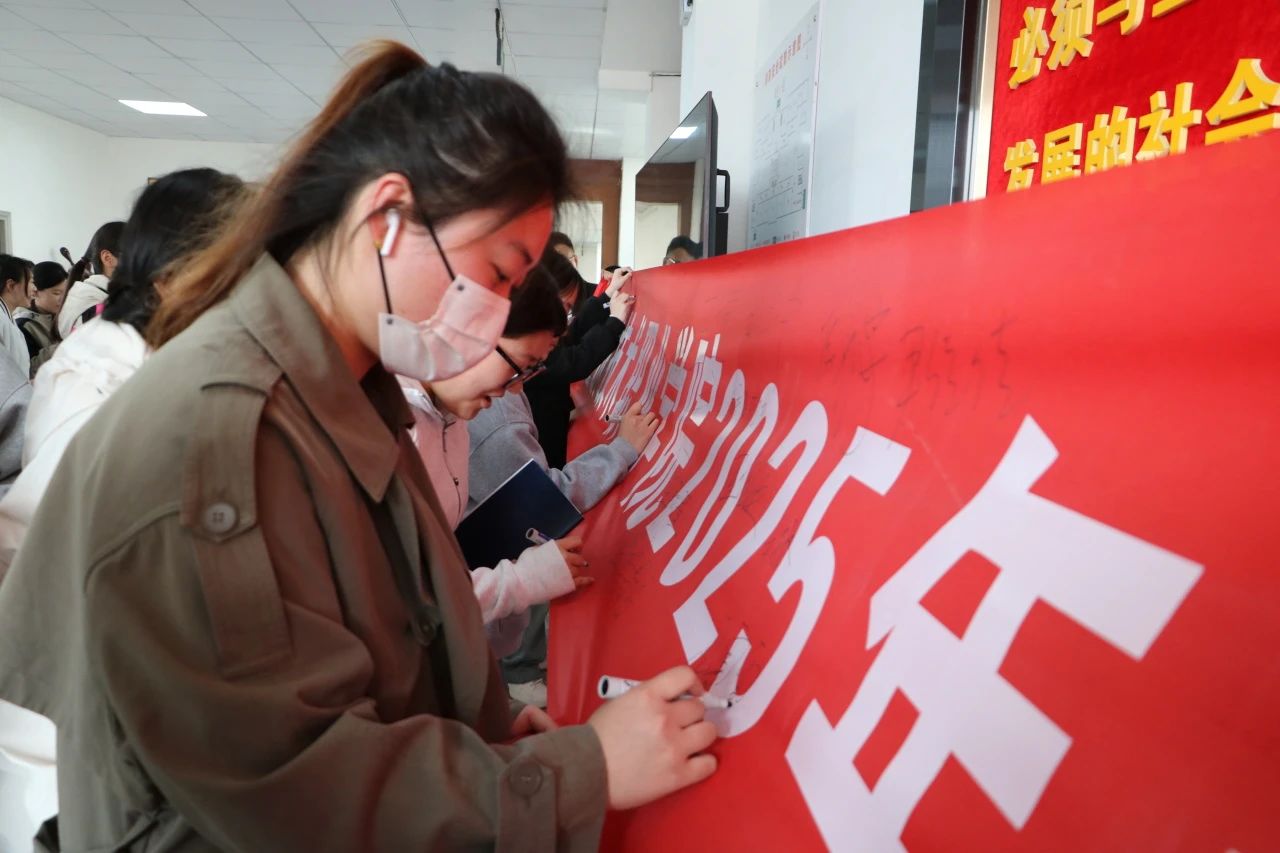 最后,同学们纷纷在横幅上签下自己的名字。他们挥毫泼墨,铁笔银钩,力透横幅,以青春之名立誓,用热血之约明志,不负师恩如海,不负岁月鎏金,更不负无数个日夜灯火长明的坚守!