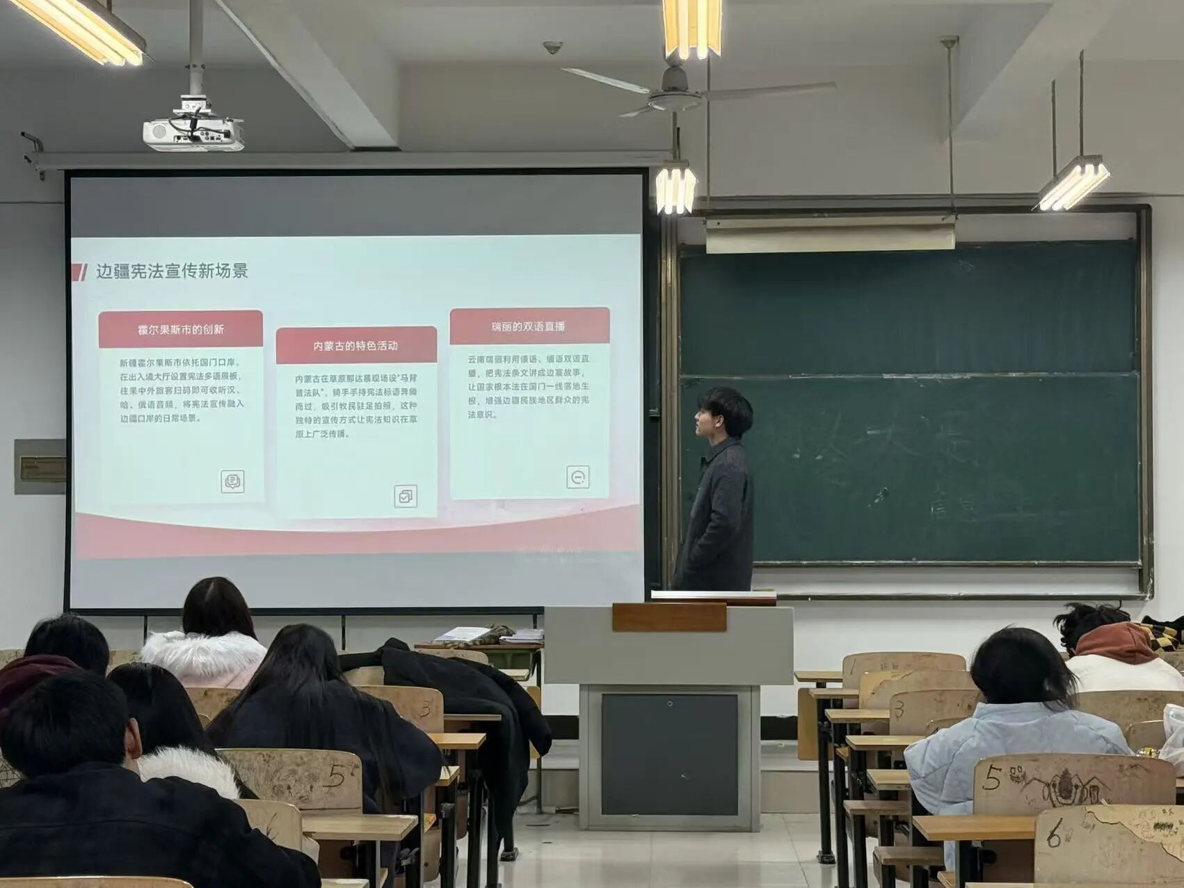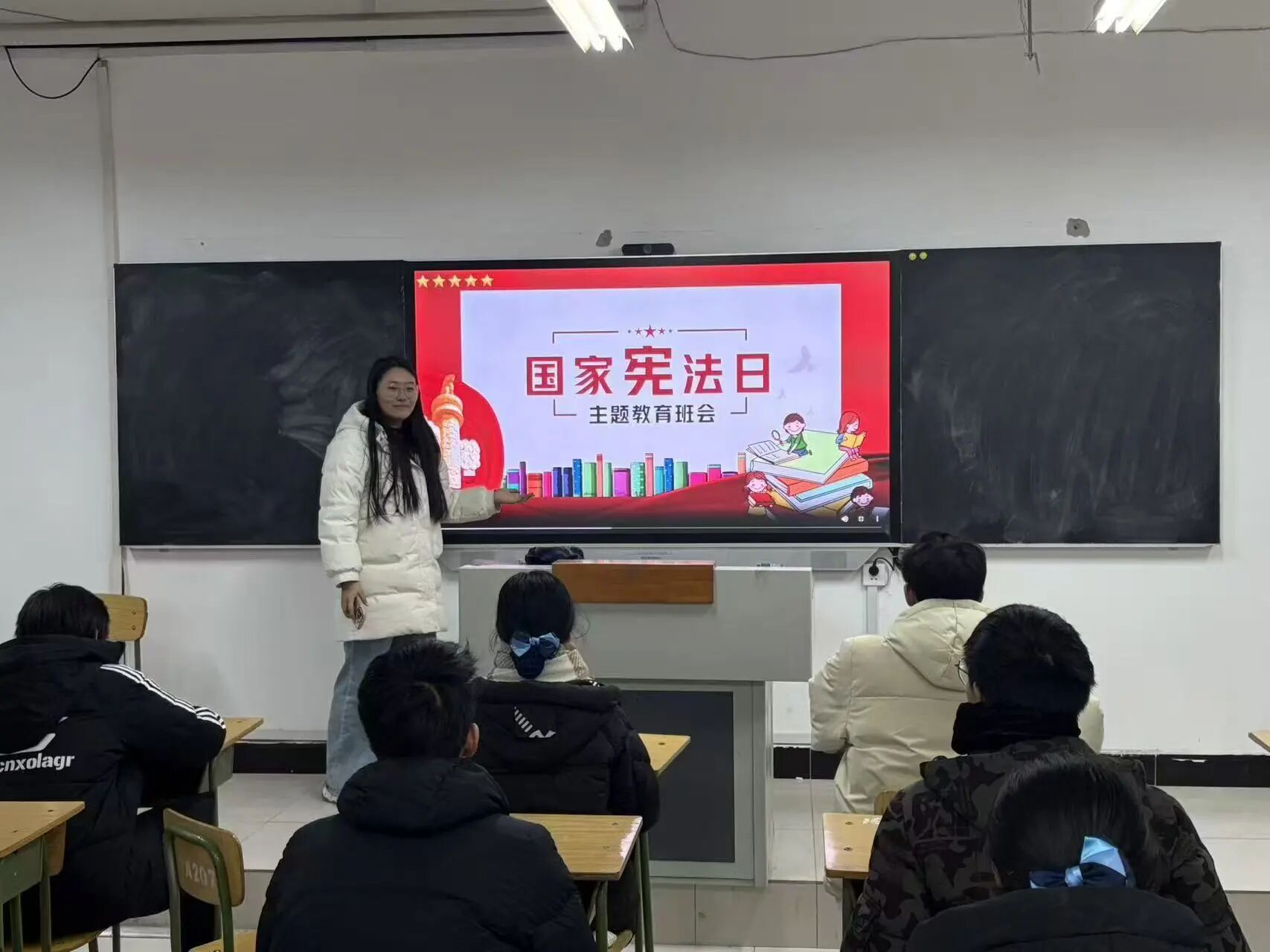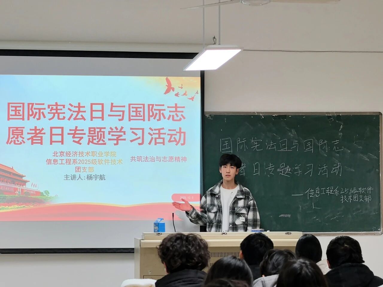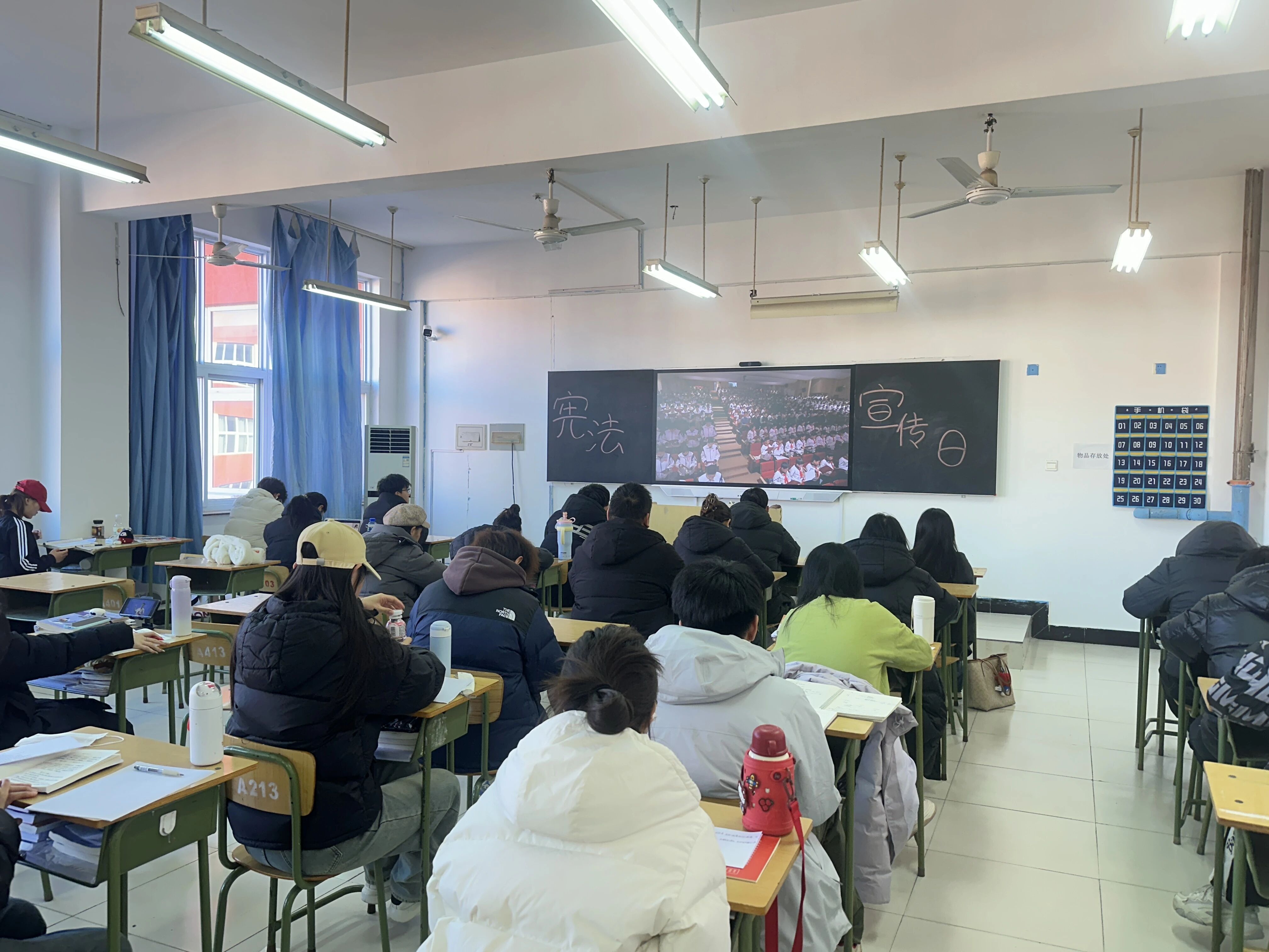 12月4日,学生处组织部分学生集中收看了教育部主办的“宪法晨读”活动直播。跟随直播流程进行宪法条文诵读,感受庄严的仪式感。清晰的宣读声回荡在教室中,展现了青年学子对宪法的崇高敬意。