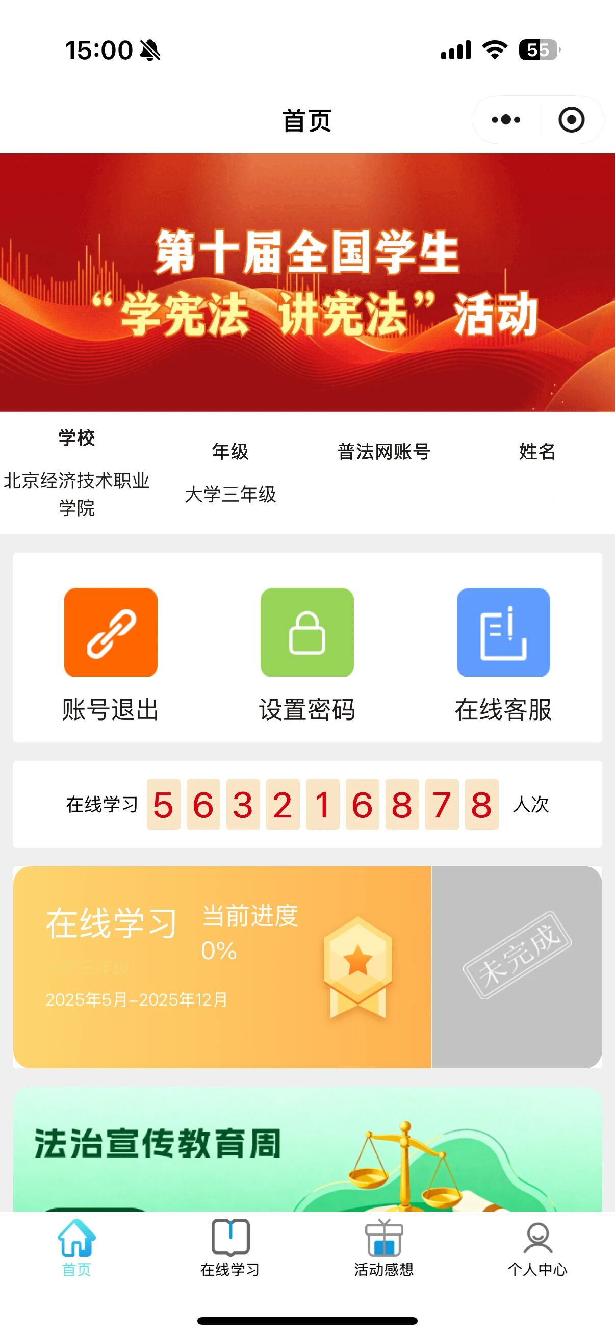 学生处依托教育部全国青少年普法网平台,积极动员学生参与“宪法卫士”在线学习与竞答活动。学生们积极响应,通过自主学习和趣味答题巩固宪法知识,形成了“比学赶超”的浓厚氛围。这种贴近青年特点的互动形式,有效提升了普法的趣味性与实效性,让宪法知识在寓教于乐中深入人心。