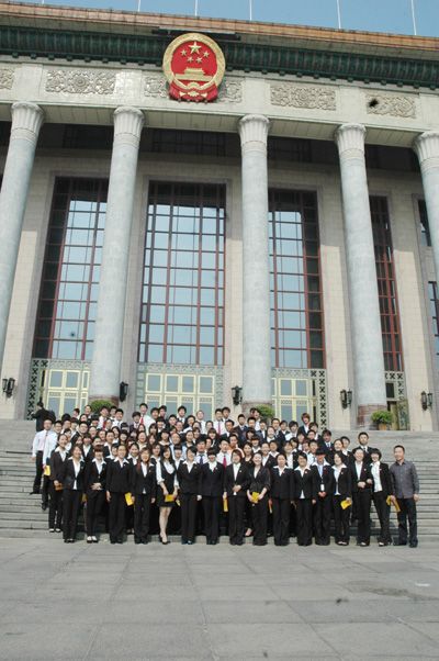 本网讯 5月26日,我院组织第九期党校学员、优秀共青团干部、优秀共青团员代表,青年教师代表和旅游管理系全体师生,共计200余人赴人民大会堂参加红色动画片《西柏坡》首映式。
