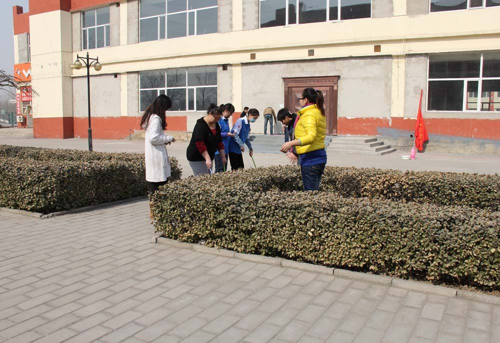 连日来,广大团员青年积极行动起来,投身学雷锋活动中, 以实际行动传承雷锋精神。团委制定校内卫生分片划区保洁承 包责任制,组织团员青年针对教学楼公共区域、公共绿地、 宣传橱窗、食堂等公共设施进行卫生保洁,发扬雷锋热爱劳动、 无私奉献的精神 。