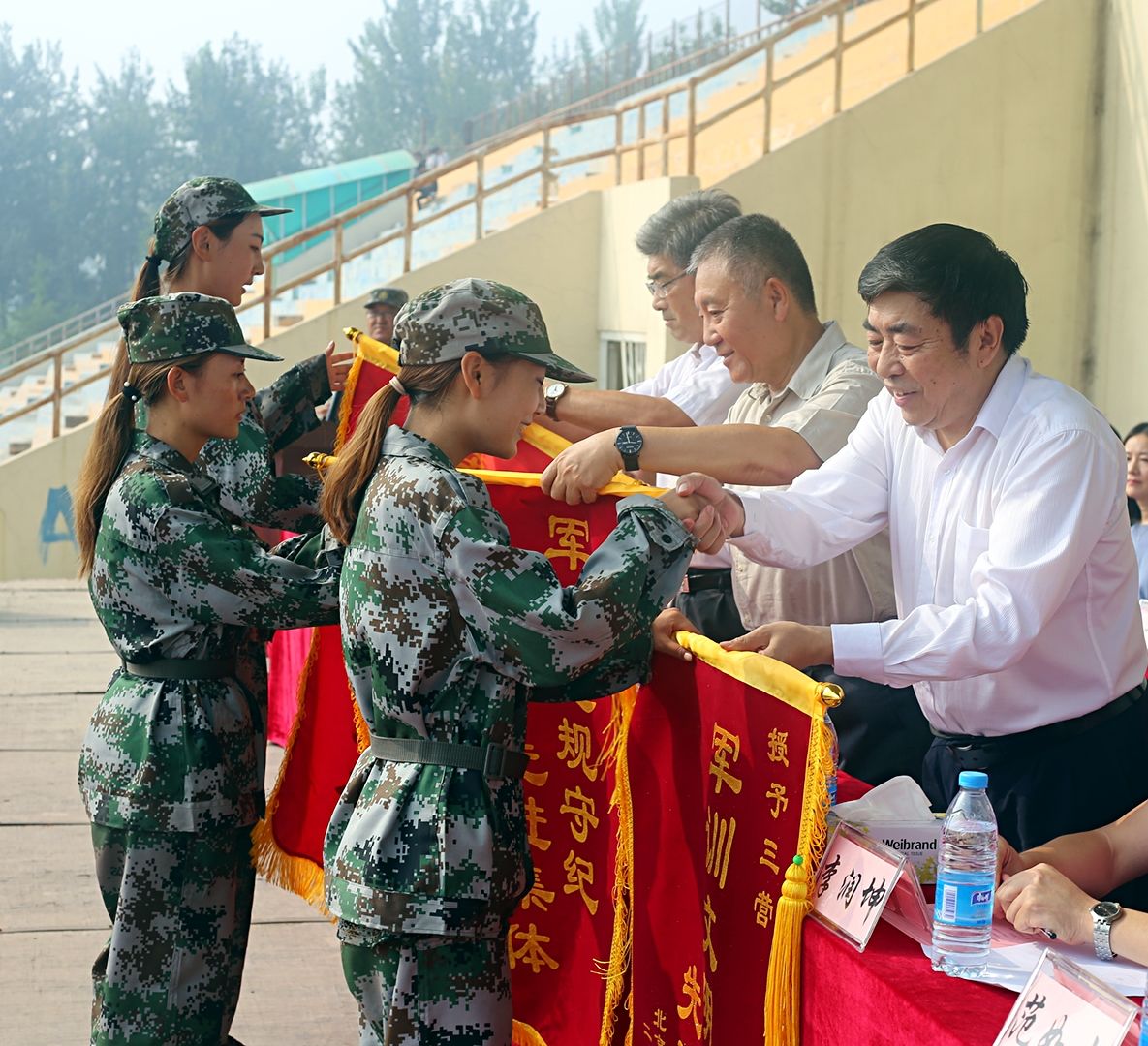 随后,军训阅兵分列式正式开始。在beat365亚洲体育官方网站校旗的引领下,全体参训学生连队方阵,踏着铿锵有力的步伐,喊着高亢嘹亮的口号,依次通过主席台。