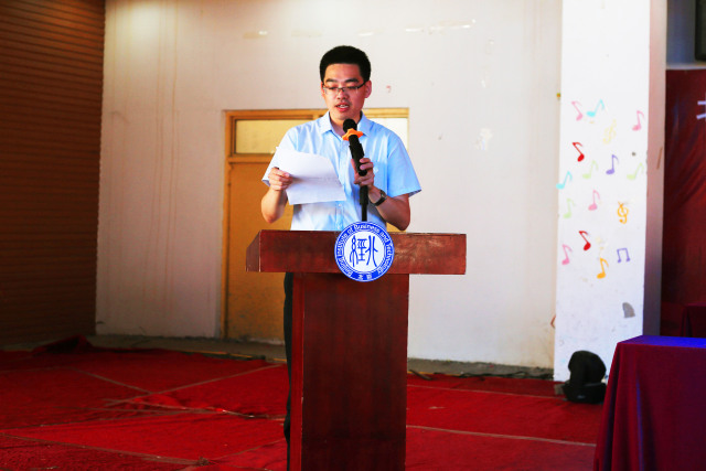 陈立飞老师代表全体教师对即将毕业的同学们表示衷心祝贺,并对毕业生提出了期望,期望他们承载母校寄予的厚望,担负起历史使命,踏上新的征程,施展远大抱负,用学识和才智回报社会。