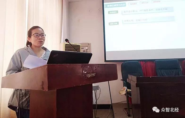 刘红颖老师以《信息化教学能力大赛与蓝墨云班课》为题做了专题报告。刘老师主要从参赛的感受与收获、大赛反思和蓝墨云班课平台三个方面进行了汇报。刘老师结合自己参加信息化教学能力大赛的切身经验,详细为大家介绍了参赛中的经验,如需要全方位的提升教师的教学能力,注重团队的力量等,并提出了要注重选题、充分收集数据、加大支撑力度等建议。