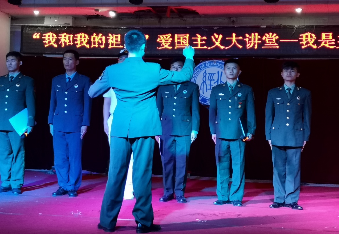 2019年5月22日18点30,在学院大礼堂举行爱国主义大讲堂——“我和我的祖国”我是共和国卫士演讲活动。我院七名退伍大学生用自己切身感受的经历,讲述穿上军装的使命及收获。党总支周宏书记、院长助理张国强同志,学院征兵工作站、团委、学工处领导、二级学院副院长、班主任出席了本次活动。
