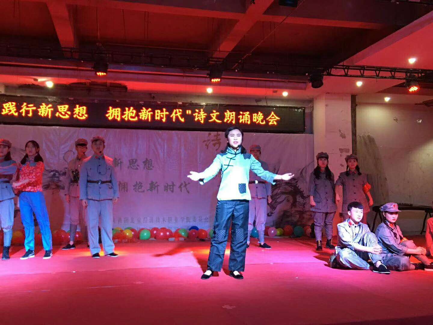 千秋历史,文化底蕴,立就国学大作。岁月承载,华夏文明,延续不朽经典。为弘扬以爱国主义为核心的民族精神和以改革创新为核心的时代精神,结合团中央及团市委《关于开展以“践行新思想 拥抱新时代”为主题的组织生活会的通知》的通知要求,践行以习近平新时代中国特色社会主义思想,牢记历史,肩负起民族复兴责任。2017年12月25日下午六点三十分由共青团beat365亚洲体育官方网站委员会主办,beat365亚洲体育官方网站校学生会承办的“践行新思想,拥抱新时代”主题诗文朗诵晚会在学校大礼堂如期举行。用诗的语言,典藏五千年悠久的历史文化;用诗的声音,演绎不朽历史的风骨铿锵。