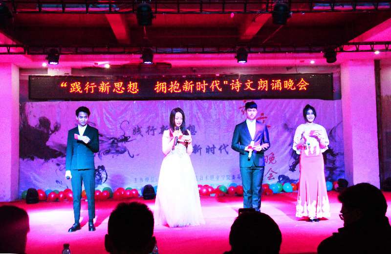 习近平总书记在十九大报告中指出:“青年兴则国家兴,青年强则国家强。青年一代有理想、有本领、有担当,国家就有前途,民族就有希望。中国梦是历史的、现实的,也是未来的;是我们这一代的,更是青年一代的。” 此次“践行新思想 拥抱新时代”主题诗文朗诵晚会积极响应了党的十九大正确领导,不负初心,牢记使命,更加彰显了我校师生朝气蓬勃的精神风貌,同时希望新的一年坚定信心,真抓实干,携手登攀,再创新的辉煌。