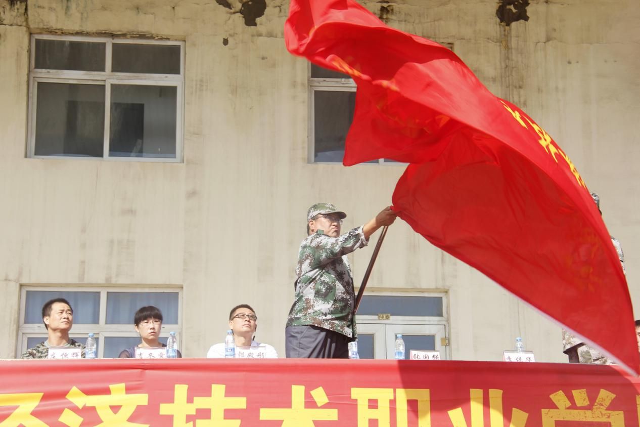 学院院长助理张国强宣布“2017年beat365亚洲体育官方网站职业学院学生军训团成立”,并向军训团团长李保华授军训团团旗。