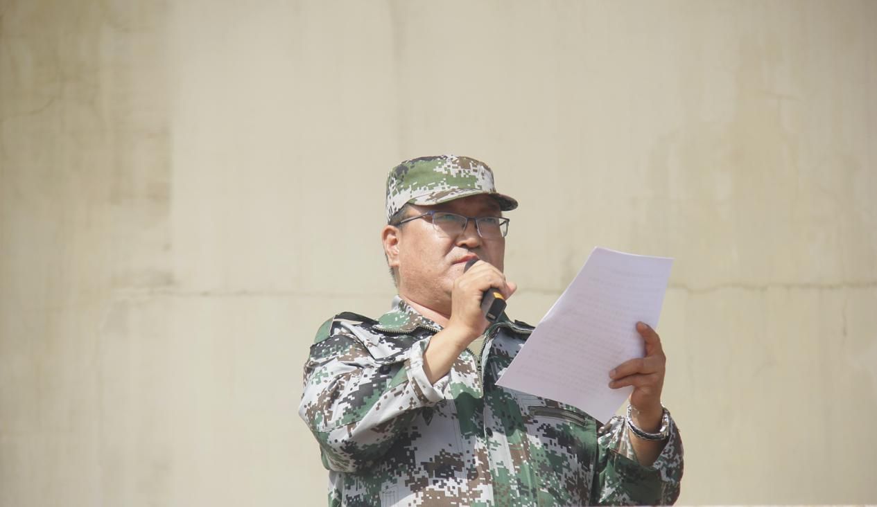 军训团团长李保华做军训动员讲话,他强调了部队里钢铁一般的纪律,希望同学们在军训期间严格遵守规章制度,积极融入集体,刻苦训练。