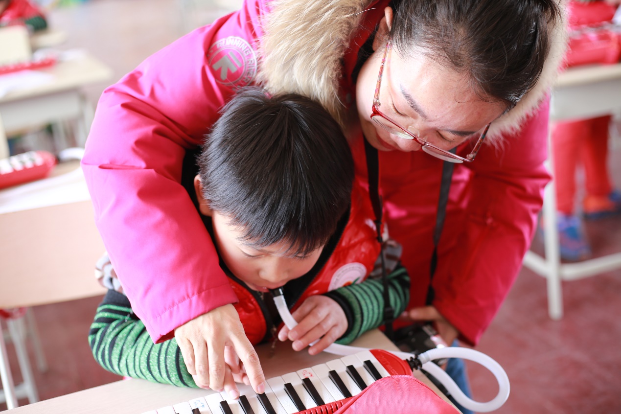 有了上一次的经验,这次我们把孩子们分成了两个班。一班复习口风琴,二班朗诵。等第一节课结束后,老师利用休息时间互换,二班复习口风琴,一班学习朗诵。然后老师再互换。为的是老师能关注到每一个孩子,让孩子们学到更多知识。