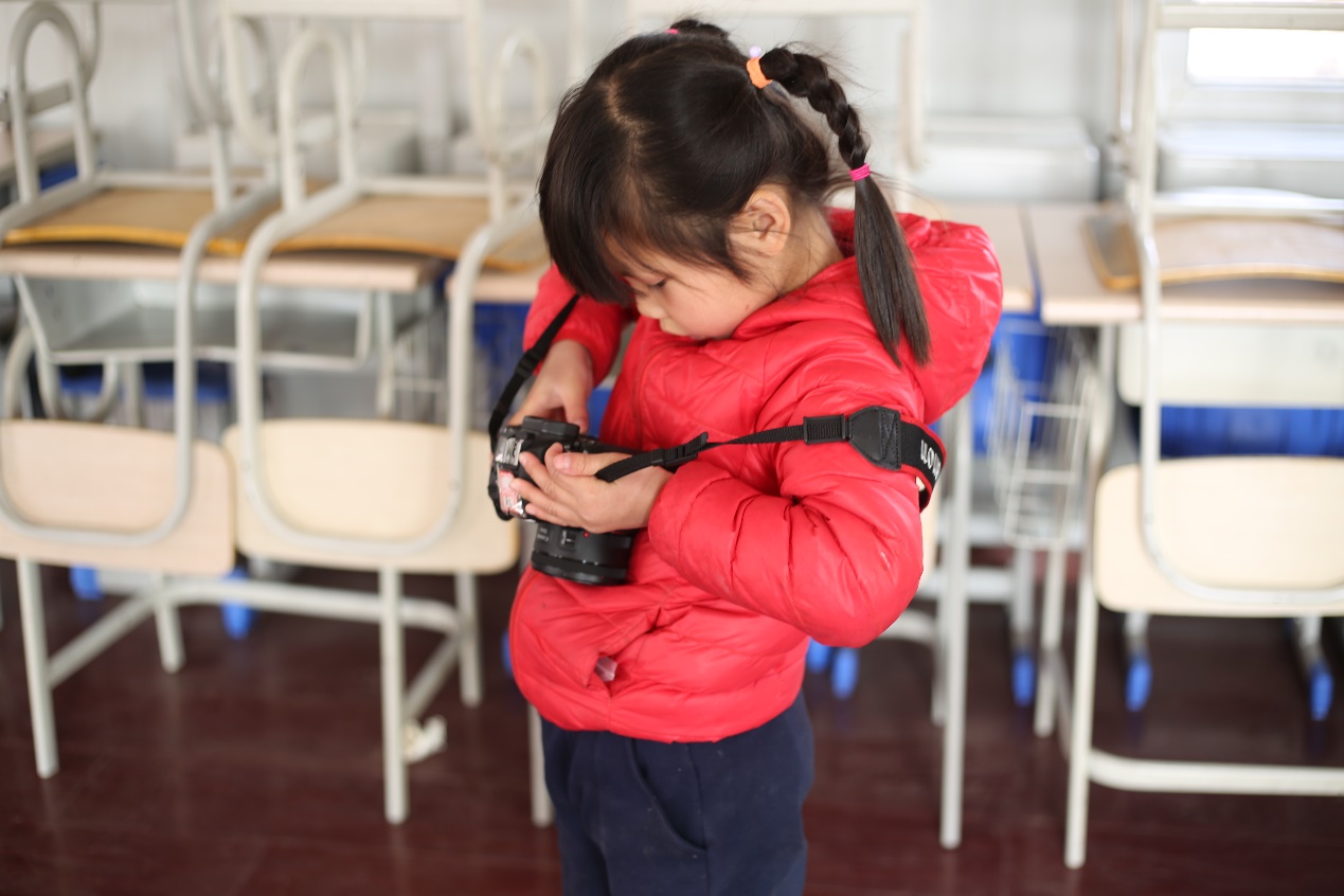 课间休息时,我们还为孩子们带来了摄影手把手教学。他们似乎对拍照特别感兴趣,尤其喜欢和哥哥姐姐一起拍照,当然,在孩子们掌握一定的技巧后,更喜欢亲手拿着相机拍出属于他们自己的作品。