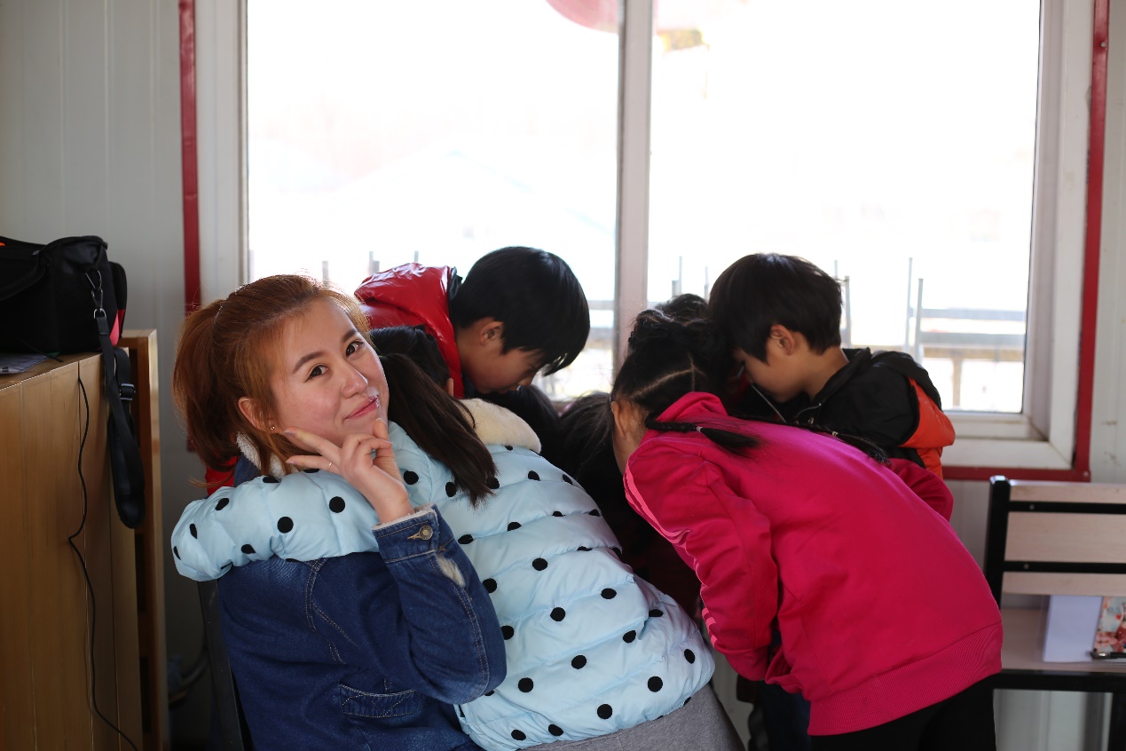 经过第一次与孩子们的相处,他们与我们渐渐熟悉起来。对我们这次的到来表现得非常热情。有的孩子看见我们下车,远远的就跑过来拉着哥哥的手一起去教室。