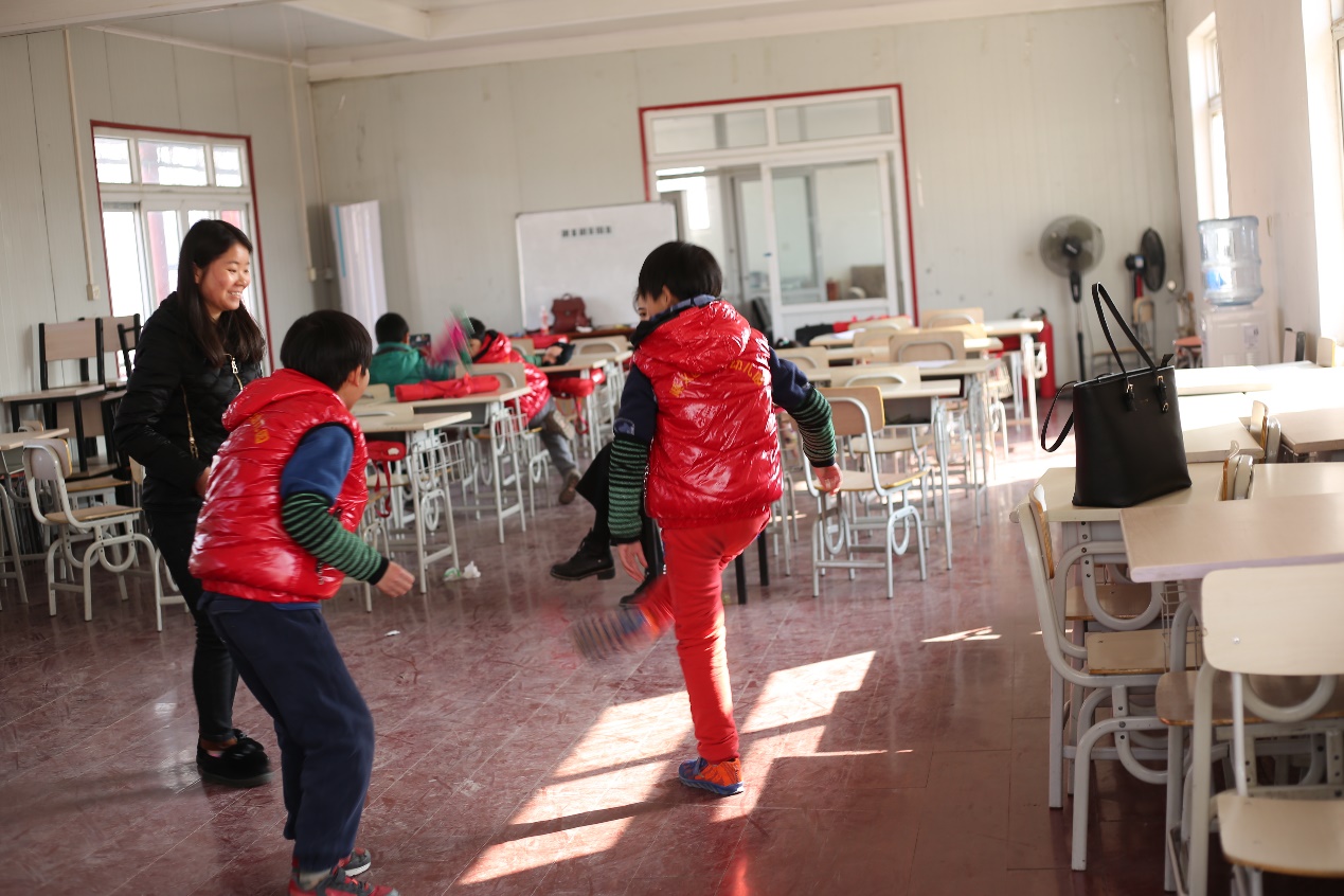 对于那些不熟练的孩子,老师们和志愿者们都特别耐心的教他们,手把手的帮他们改正错误姿势。