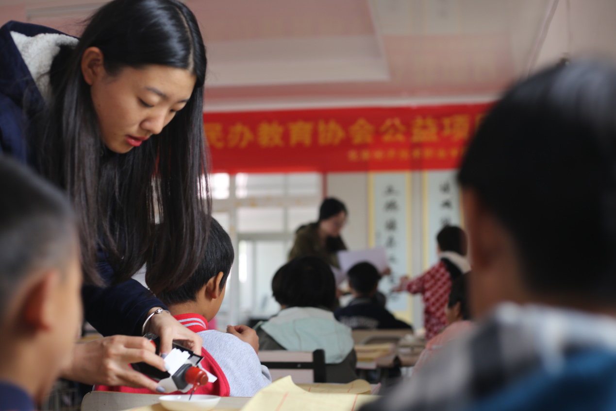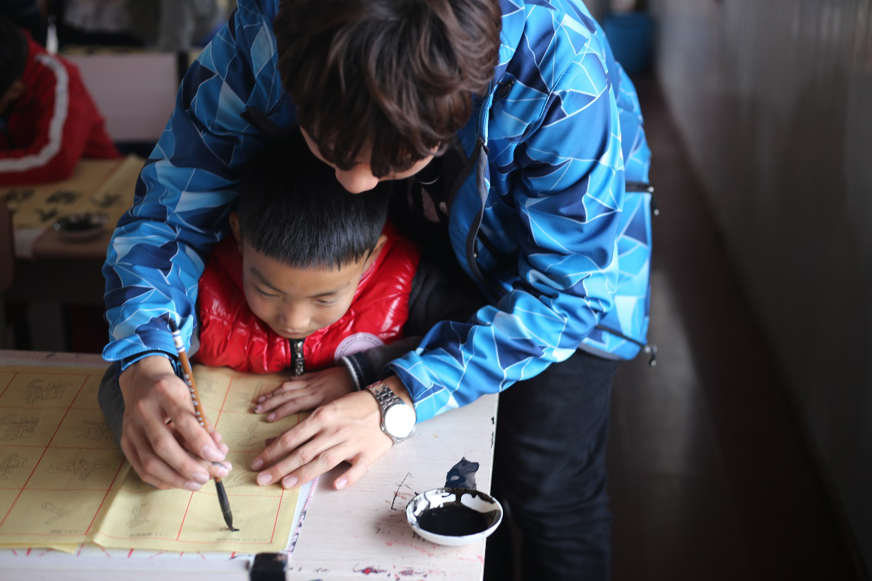 孩子们已经不是第一次去学习书法,从最初的不会拿毛笔,急躁的描字,到慢慢开始一笔一划认真的练习,大多数学生取得的进步是非常显著的,通过书法,他们得到了快乐,看到他们非常开心,所有的志愿者也是露出了笑容。