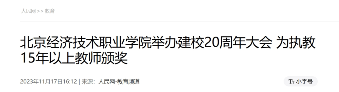 11月17日,人民网以《beat365亚洲体育官方网站举办建校20周年大会 为执教15年以上教师颁奖》为题,报道beat365亚洲体育官方网站建校20周年校庆大会。