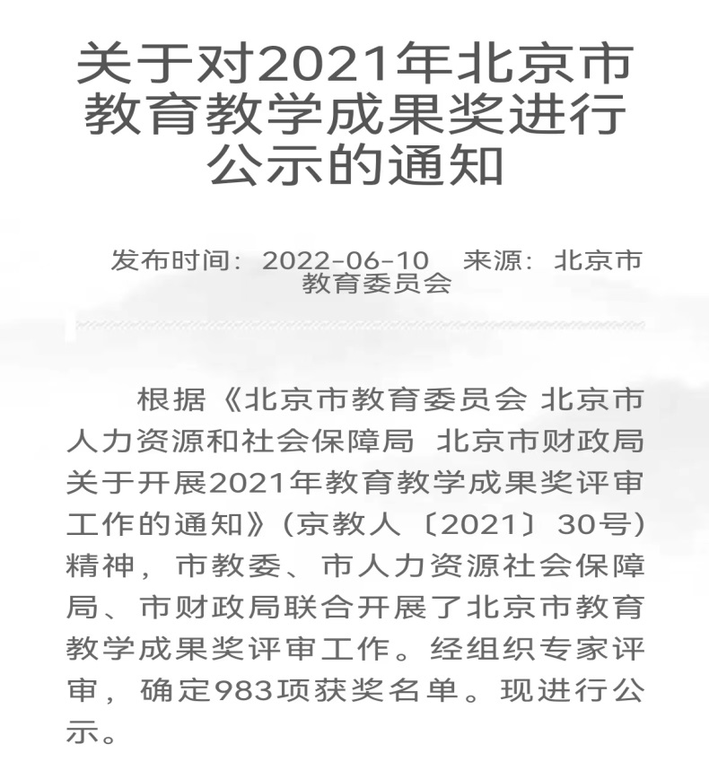 喜报:我校在2021年北京市职业教育教学成果奖再获佳绩