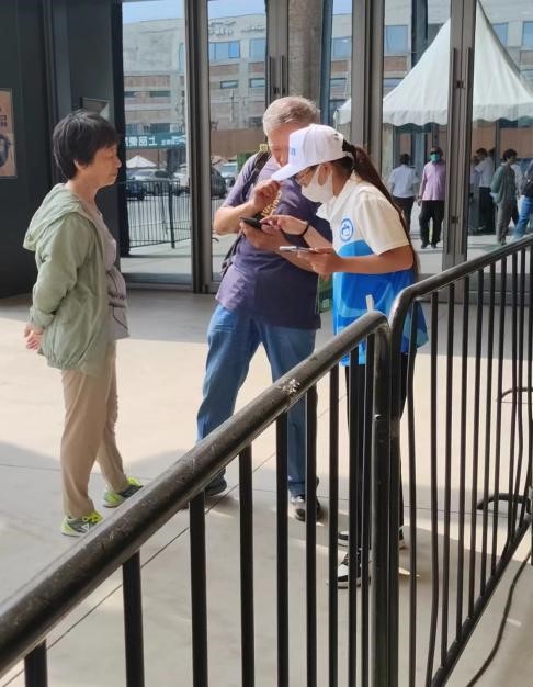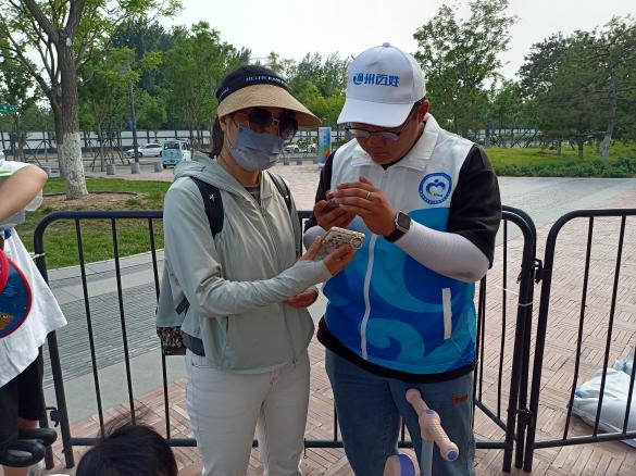 我们主要负责门口检票以及园区引导的志愿服务工作。在工作中我意识到,对待老年人群需要掌握技巧做一名合格的“聆听者”。有些老人在寻求帮助时常常表述不清,这时候就需要我们认真且耐心地去倾听,在理解他们的真实诉求后,再给予适当的帮助。