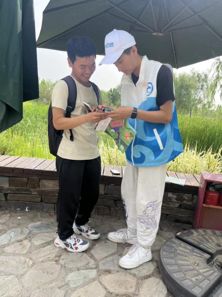 在这次活动中,我主要的志愿服务内容是在公园里的“谷雨”点位为游客提供咨询、打卡、道路引导等服务。虽然天气炎热,但我并不觉得辛苦,反而感到非常充实。其间,有位家长与孩子走散了向我寻求帮助,在详细询问孩子的特征后,我立即将孩子的信息发布到工作群里让其他站点的同学留意,很快我们就找到了那个小朋友。孩子家长的一句句道谢让我们觉得一切都是值得的,也深深体会到了帮助他人的快乐。