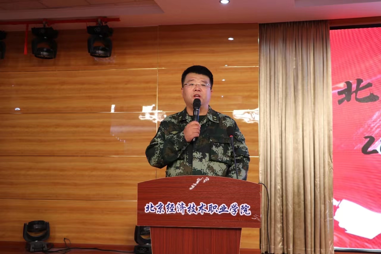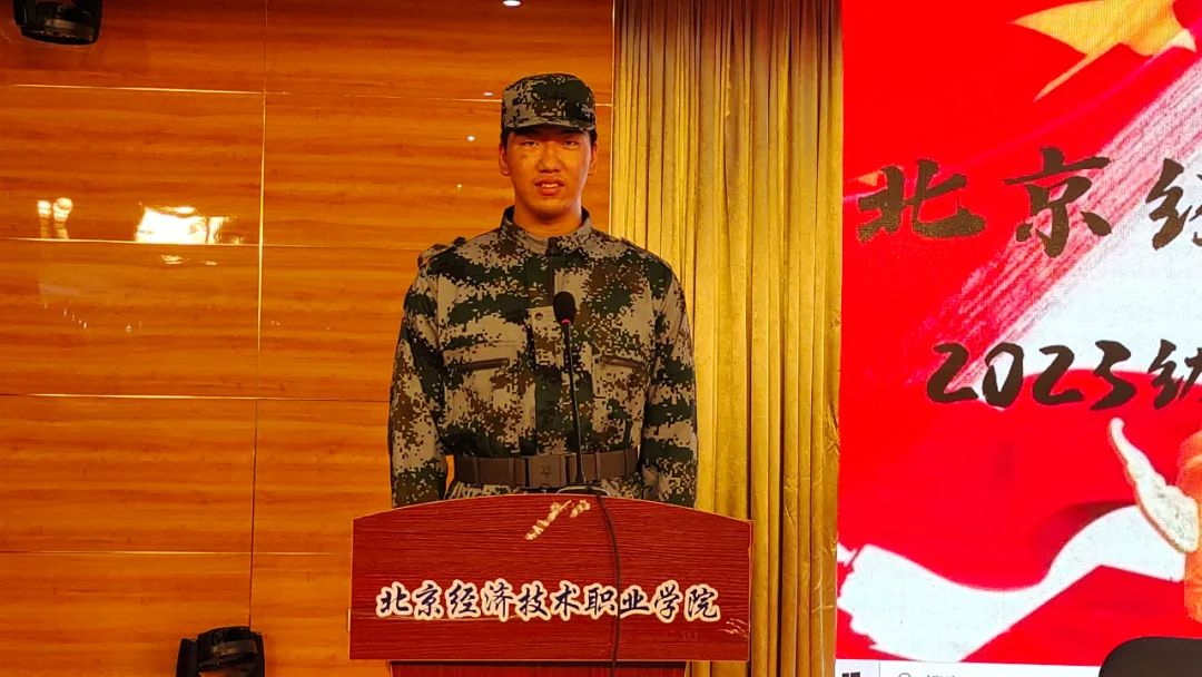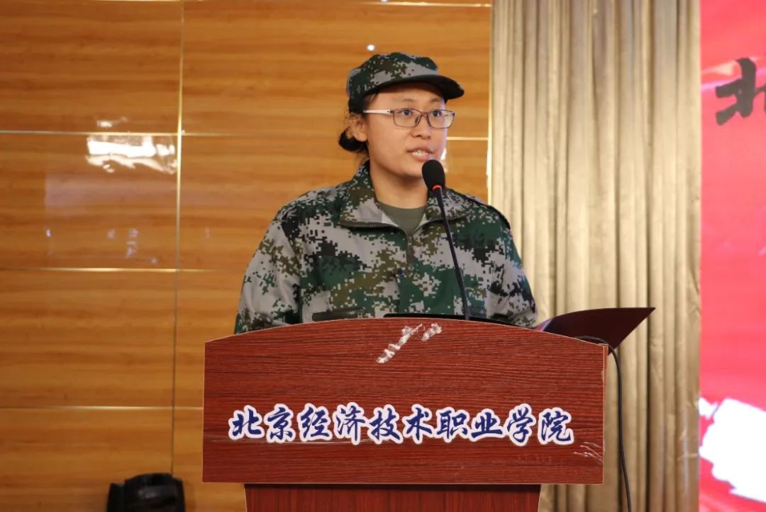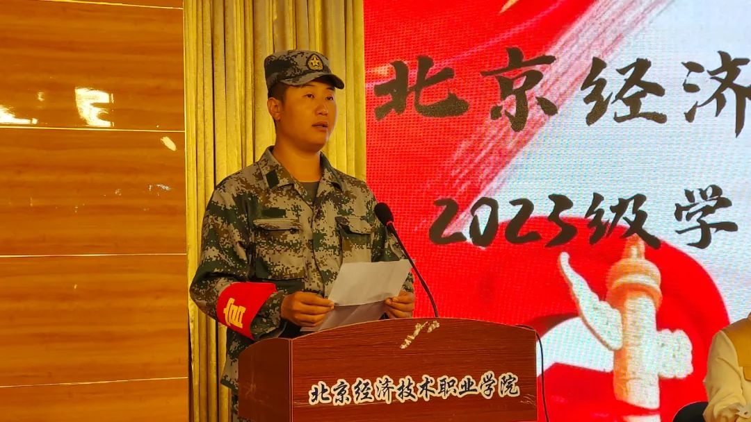 开营仪式在嘹亮的国歌声中拉开帷幕。2023级新生代表柳佳同学发言。他向全体同学发出倡议:应牢记初心、自信、拼搏、奋斗,以高昂的斗志、饱满的热情投入到训练中去!练出骨气,练出北经济的魂!