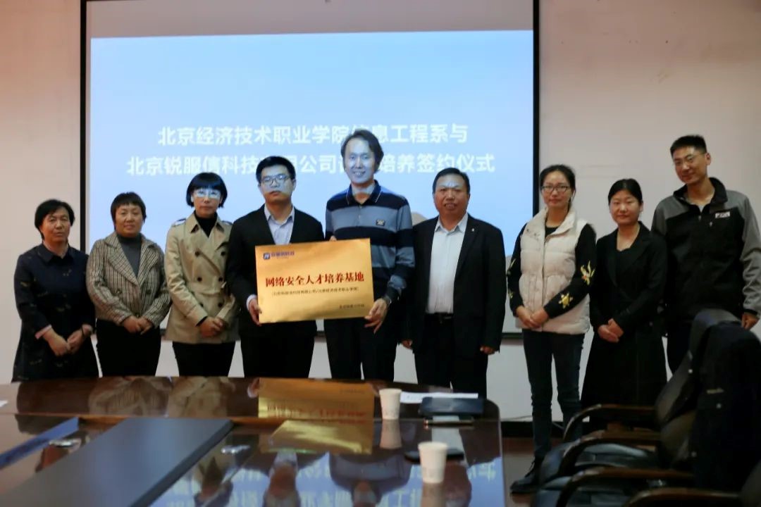在与会成员的共同见证下,beat365亚洲体育官方网站信息工程系主任冯松和北京锐服信科技有限公司总经理唐蕊代表校企双方现场签订了校企合作协议书,并为“网络安全人才培养基地”揭牌。