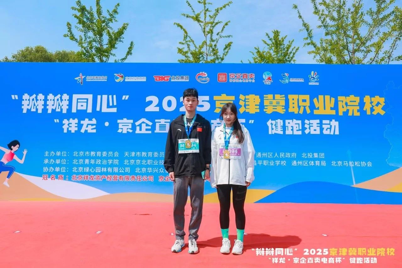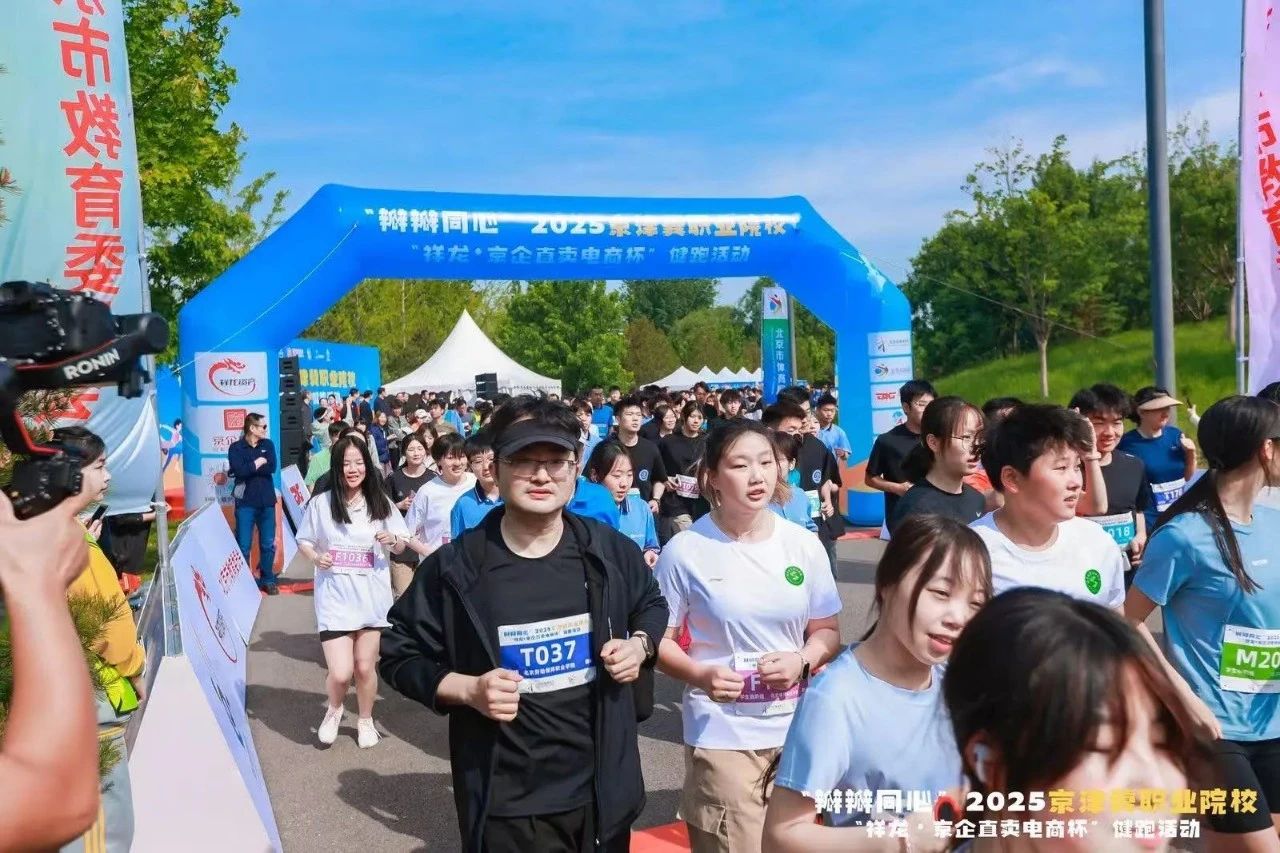 工作动态/ LATEST NEWS5月10日,由北京市教育委员会、通州区人民政府等部门主办的“瓣瓣同心”2025京津冀职业院校“祥龙·京企直卖电商杯”健跑活动在城市绿心森林公园鸣枪开跑。此次健跑活动吸引了来自京津冀三地的本科高校、中高职院校、技工院校、普通高中的888名师生共同参与。